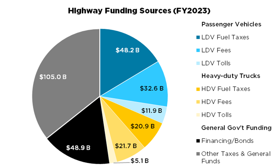 Because trucks are heavier and less fuel-efficient (per mile) than passenger vehicles, trucks do pay more per-mile than passenger vehicles in local, state, and federal taxes and tolls for highways (roughly 16 cents per mile traveled for heavy-duty trucks compared to 4 cents per mile for passenger vehicles). However, you know who pays even more for highways? Everyone else. The general public, which includes non-drivers, pay the most towards our highway system because our highway spending is so out of control we have to pay for it through general government funds over and over again.