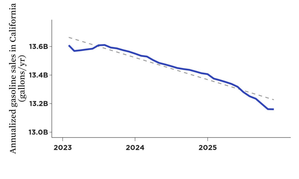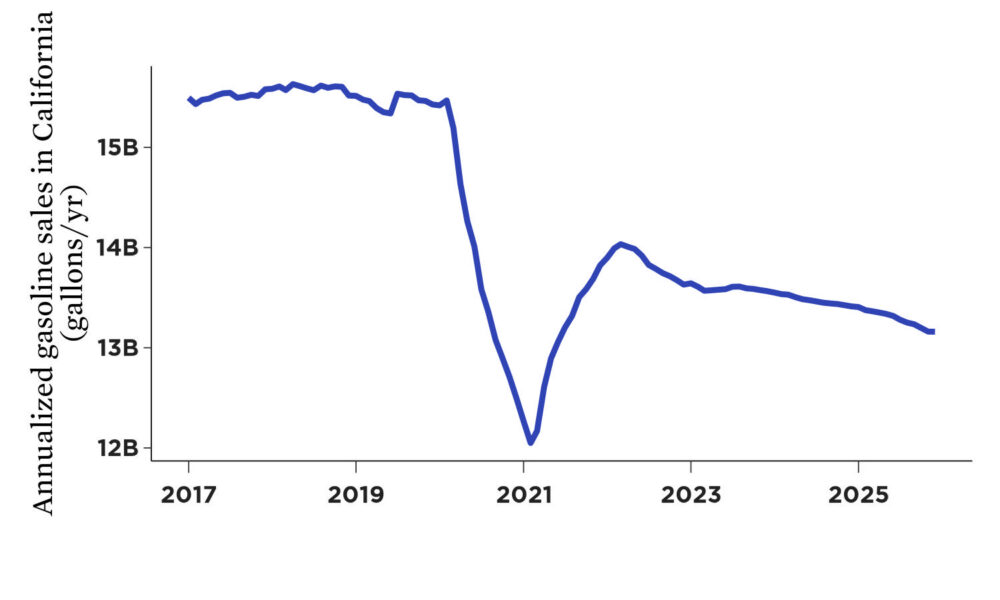 Everyone’s interested in the price of gasoline this spring. Well, everyone with a gasoline-powered car is. Rising gasoline prices means Californians are now spending about $6 billion per month on gasoline. Currently, that’s due to the conflict in the Middle East, but this is just the latest shock to prices, with both international issues (like the invasion of Ukraine and the COVID pandemic) and more local disruptions like refinery fires causing past spikes in the price at the pump in California. But gasoline spending would have been much higher if drivers in the state had not been already cutting gasoline use.