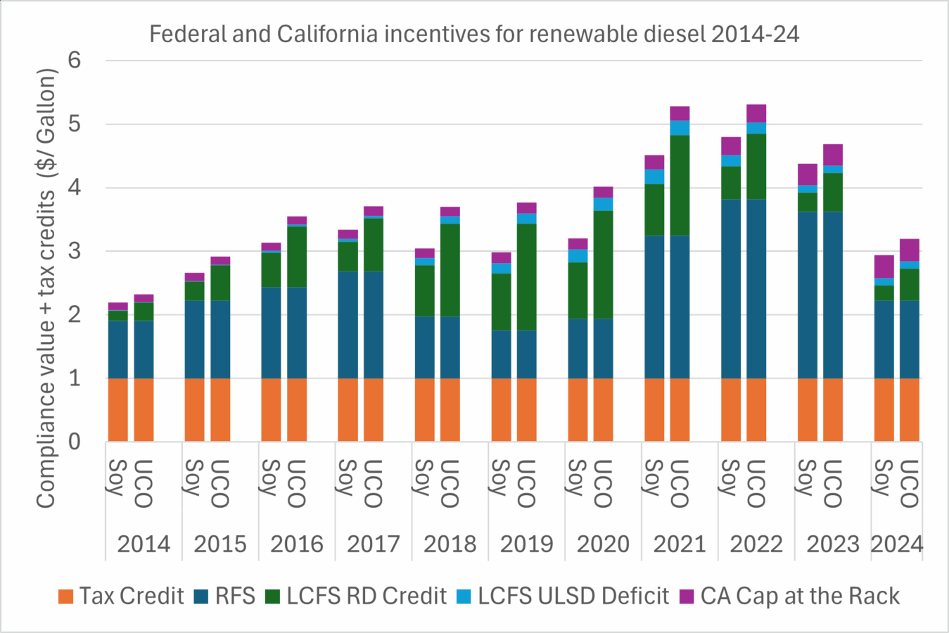 Renewable diesel incentive stacks 2014-2024