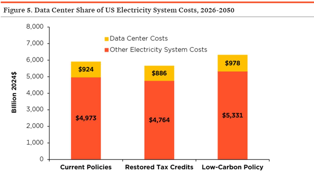 - The looming data center-driven demand surge comes with significant costs across all scenarios, and policymakers must take steps to ensure that these costs are not passed on to consumers